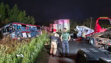Duas Pessoas Morrem e 34 Ficam Feridas em Grave Acidente na PR-151 Na noite de domingo (5), uma colisão severa entre um caminhão e um ônibus na PR-151, no km 468, próximo a São Mateus do Sul (PR), resultou em duas mortes e 34 feridos. O acidente, ocorrido por volta das 21h20, mobilizou uma grande operação de resgate com a participação do Corpo de Bombeiros, SAMU, Polícia Rodoviária Estadual, Polícia Civil e … Leia Mais