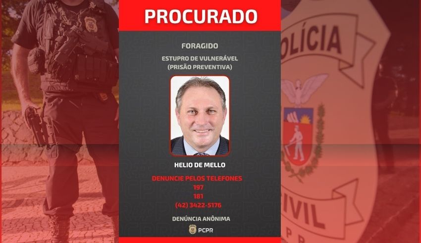 Ex-presidente da Câmara de Irati, Hélio de Mello, é procurado pela Polícia Civil após mandado de prisão Por CLAYTON BURGATH Postado em 8 de outubro de 2025 0 Ex-vereador foi indiciado por estupro de vulnerável e outros delitos envolvendo adolescentes; autoridades pedem ajuda da população para localizá-lo O ex-presidente da Câmara de Irati, Hélio de Mello, de 55 anos, é alvo de um mandado de prisão preventiva expedido pela Justiça. A Polícia Civil concluiu, no dia 26 de setembro, uma investigação que resultou no indiciamento do ex-vereador por crimes sexuais contra adolescentes, incluindo estupro de vulnerável, favorecimento da prostituição e produção de conteúdo pornográfico infantil. De acordo com o delegado Gabriel Marinho, as investigações começaram a partir de uma denúncia anônima feita pelo Disque 100. As apurações contaram com o apoio do Conselho Tutelar, que ouviu adolescentes do Colégio Estadual do Rio do Couro, onde Hélio trabalhava como professor de Educação Física. Durante as oitivas, vítimas e pais relataram abordagens de cunho sexual, mensagens com teor pornográfico e até ofertas de dinheiro em troca de imagens íntimas. Após reunir provas e depoimentos, a Polícia Civil solicitou a prisão preventiva do ex-vereador, que não foi encontrado e está foragido. O Ministério Público confirmou o recebimento do processo e deve se manifestar oficialmente nos próximos dias. Enquanto isso, a Polícia Civil solicita colaboração da comunidade com informações que possam ajudar na captura de Hélio de Mello. As denúncias podem ser feitas de forma anônima pelos telefones 197 ou (42) 3422-5176. Hélio renunciou ao cargo de vereador em 9 de setembro, pouco depois de as investigações virem à tona. Ele alegou motivos de saúde ao pedir afastamento dias antes da renúncia. Após sua saída, João Leuch (PL) assumiu a vaga na Câmara, e Selmo Vieira (Podemos) passou a presidir o Legislativo. Com sete mandatos consecutivos e mais de duas décadas na vida pública, Hélio de Mello foi presidente da Câmara em dois biênios (2017–2018 e 2021–2022) e havia sido eleito novamente para comandar a Casa em 2025 e 2026. Da Redação, com informações: PC