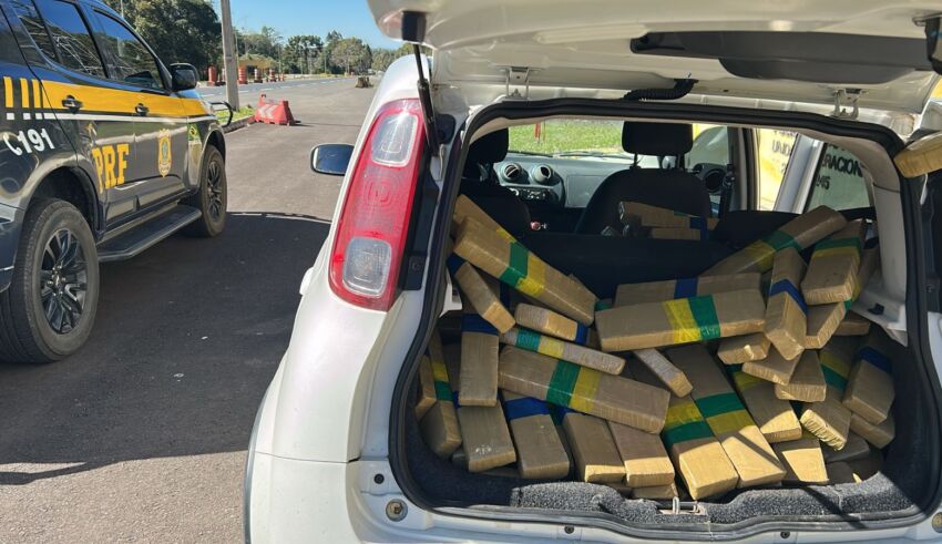 IRATI – PRF apreende mais de 150 quilos de maconha na BR-277 Por CLAYTON BURGATH Postado em 11 de agosto de 2025 0 Homem de 25 anos foi preso pelo crime de tráfico de drogas A Polícia Rodoviária Federal (PRF) apreendeu 152 quilos de maconha durante fiscalização na BR-277, na manhã deste domingo (10), por volta das 09 horas, em Irati (PR). Os policiais deram ordem de parada ao condutor de um veículo Fiat Uno e durante a fiscalização do interior do veículo, os policiais localizaram diversos tabletes de maconha dispostos no assoalho traseiro e também no porta-malas, posteriormente feita a pesagem de 152,08 quilos da droga. O motorista informou que pegou o veículo já carregado em Cascavel (PR) e levaria até Curitiba (PR). Diante dos fatos, o homem foi preso e encaminhado, juntamente com o veículo e a droga, para a Delegacia da Polícia Civil de Irati (PR).